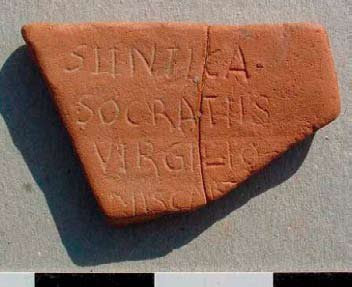Ehm? Lo que yo leo en la ostraca esa es "Seneca, Socrates, Virgilio, Miscart". De dónde has sacado esa interpretación? (Si es sarcasmo, nota que esas sutilezas se suelen perder en formato escrito).